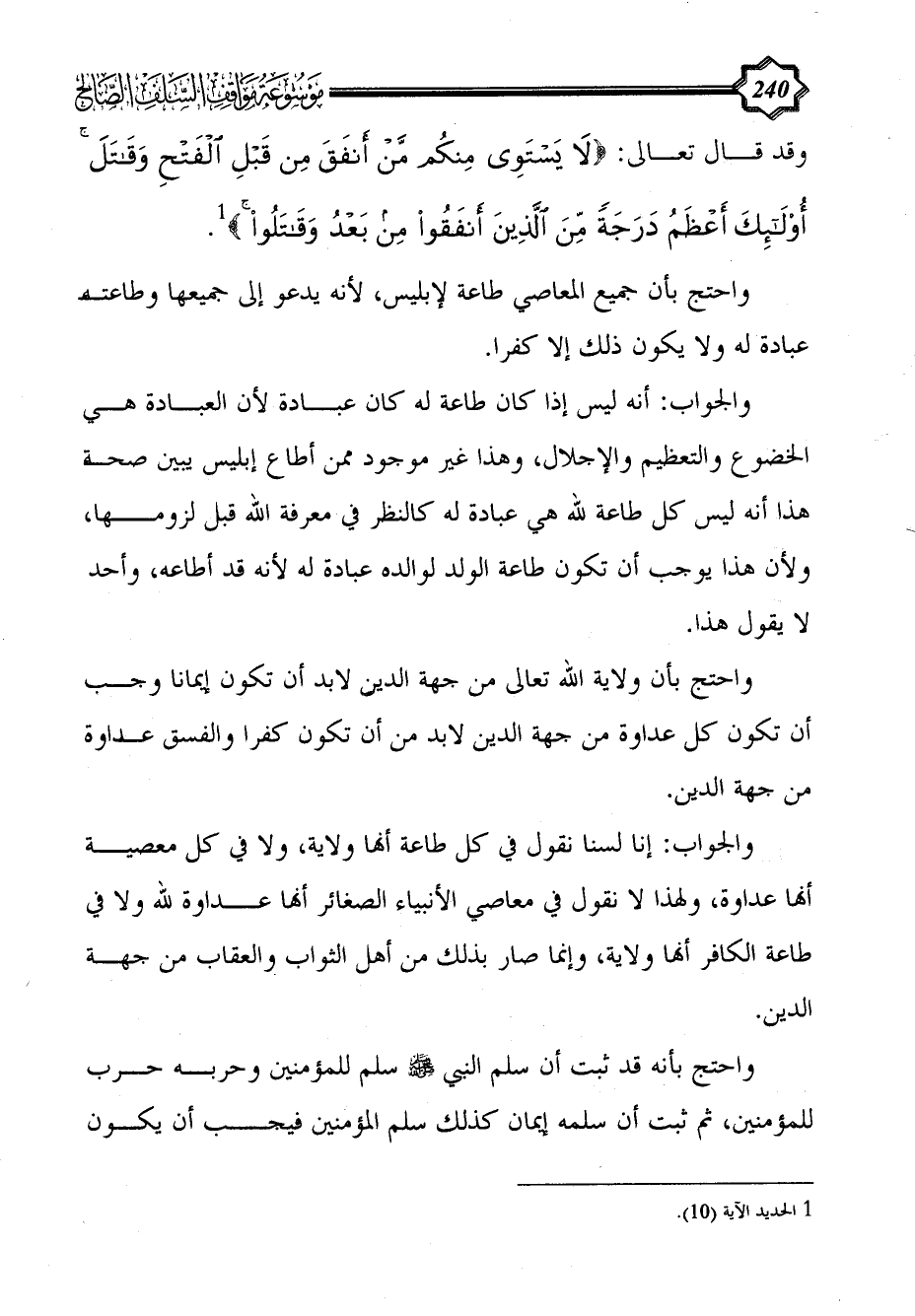 وقد قال تعالى: {لَا يَسْتَوِي مِنْكُمْ مَنْ أَنْفَقَ مِنْ قَبْلِ الْفَتْحِ وَقَاتَلَ أُولَئِكَ أَعْظَمُ دَرَجَةً مِنَ الَّذِينَ أَنْفَقُوا مِنْ بَعْدُ وَقَاتَلُوا} (¬1).