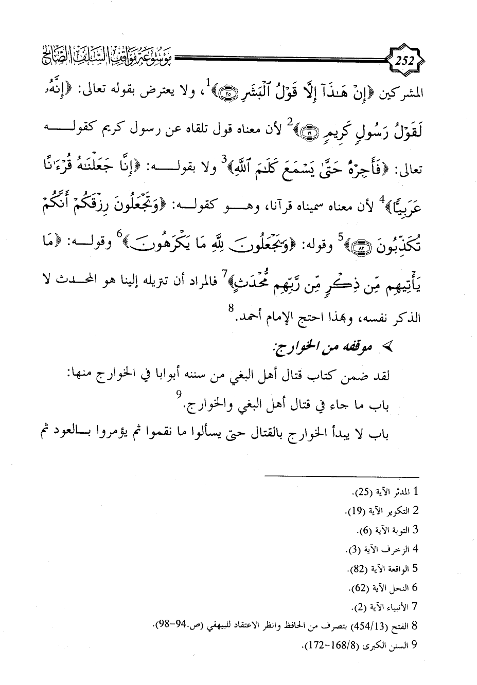 (¬8) الفتح (13/ 454) بتصرف من الحافظ وانظر الاعتقاد للبيهقي (ص.94 - 98).