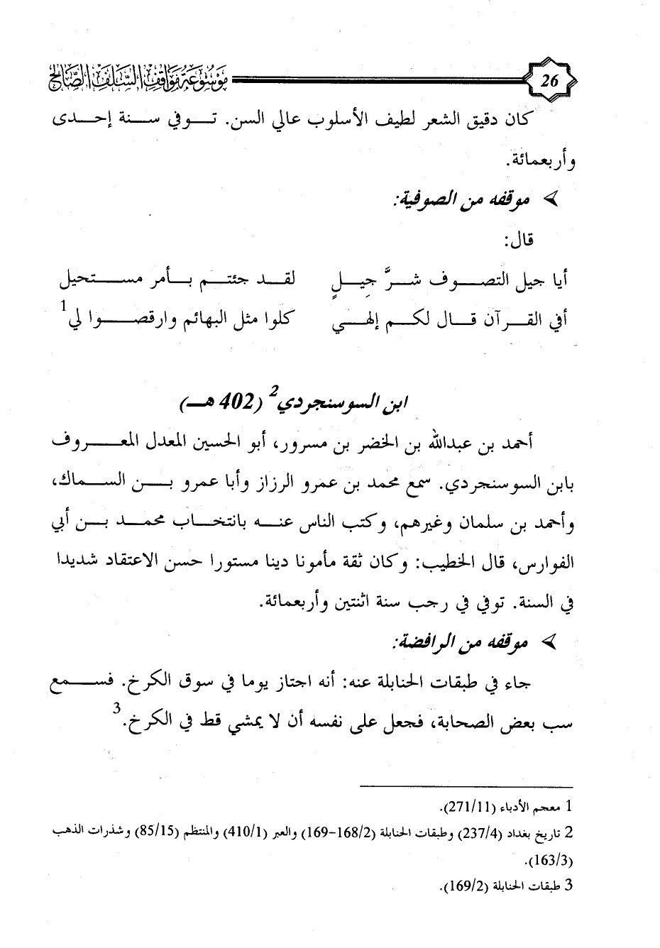 (¬2) تاريخ بغداد (4/ 237) وطبقات الحنابلة (2/ 168 - 169) والعبر (1/ 410) والمنتظم (15/ 85) وشذرات الذهب (3/ 163).