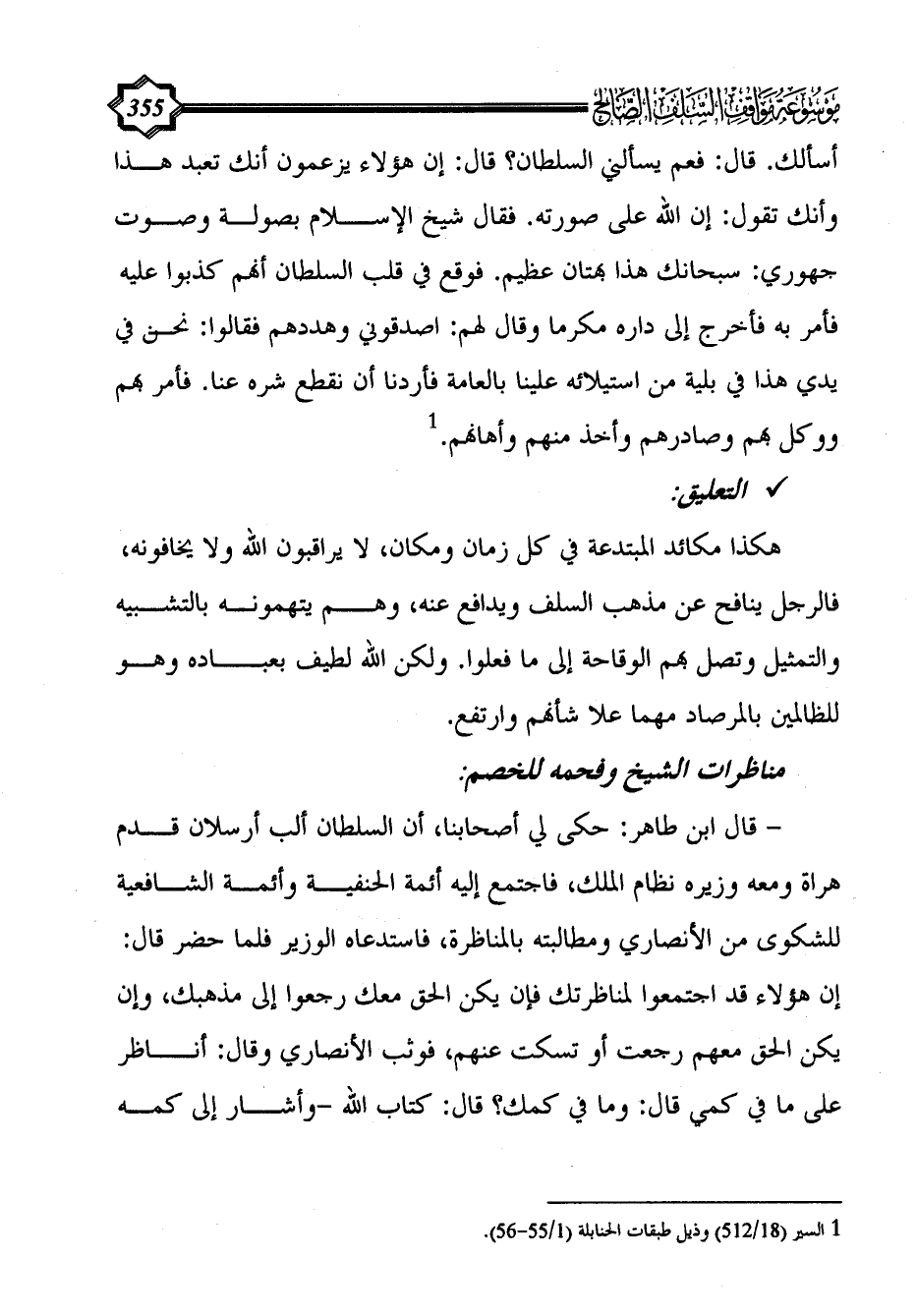 هكذا مكائد المبتدعة في كل زمان ومكان، لا يراقبون الله ولا يخافونه، فالرجل ينافح عن مذهب السلف ويدافع عنه، وهم يتهمونه بالتشبيه والتمثيل وتصل بهم الوقاحة إلى ما فعلوا. ولكن الله لطيف بعباده وهو للظالمين بالمرصاد مهما علا شأنهم وارتفع.