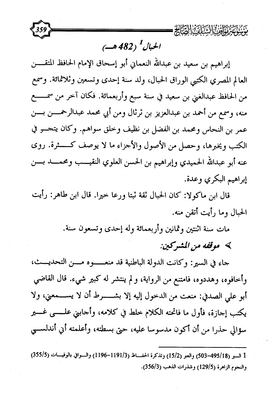 (¬1) السير (18/ 495 - 503) والعبر (2/ 15) وتذكرة الحفاظ (3/ 1191 - 1196) والوافي بالوفيات (5/ 355) والنجوم الزاهرة (5/ 129) وشذرات الذهب (3/ 356).