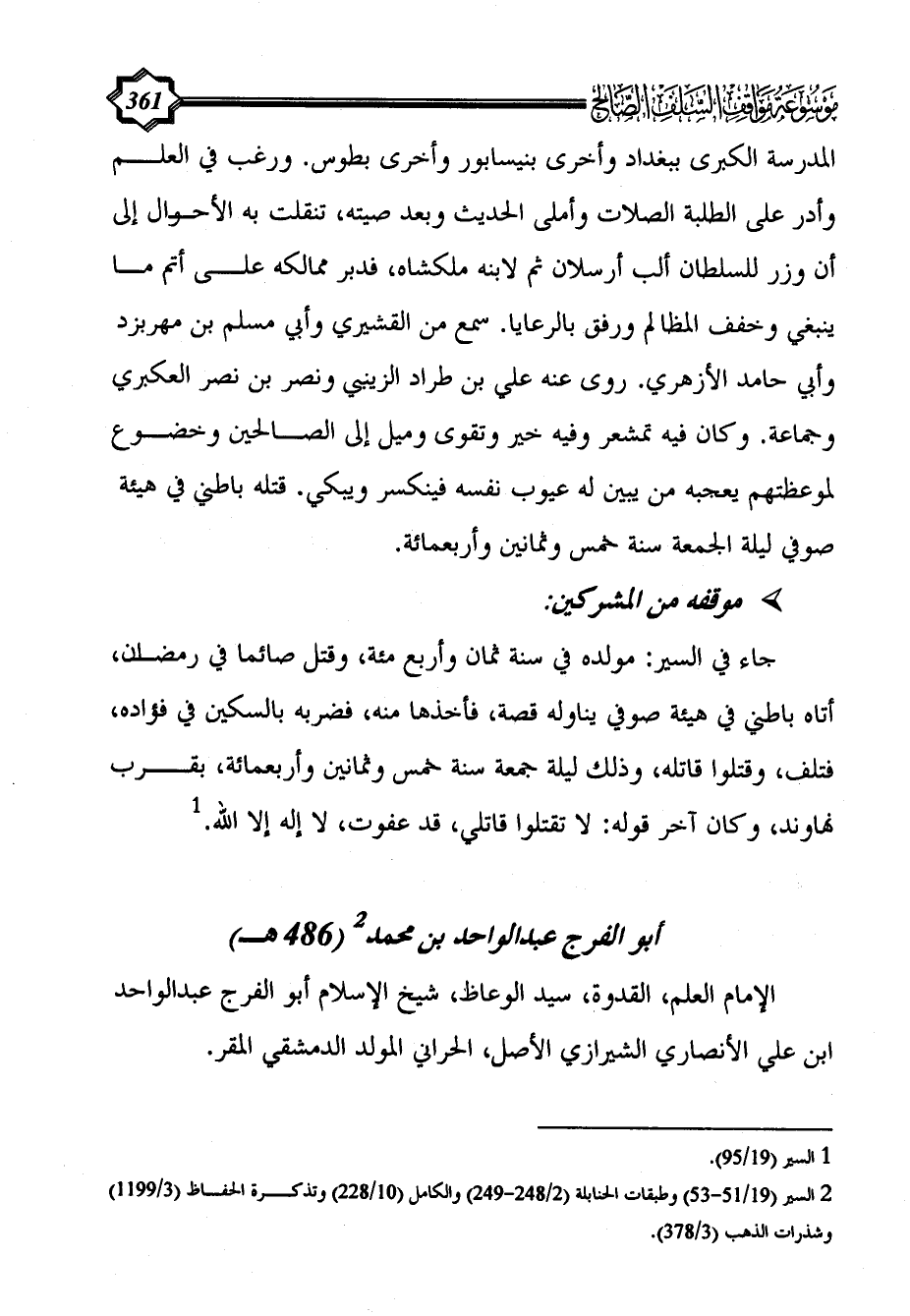 (¬2) السير (19/ 51 - 53) وطبقات الحنابلة (2/ 248 - 249) والكامل (10/ 228) وتذكرة الحفاظ (3/ 1199) وشذرات الذهب (3/ 378).