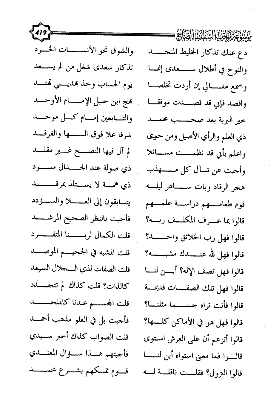 قالوا فهل تصف الإله؟ أبن لنا ... قلت الصفات لذي الجلال السرمد