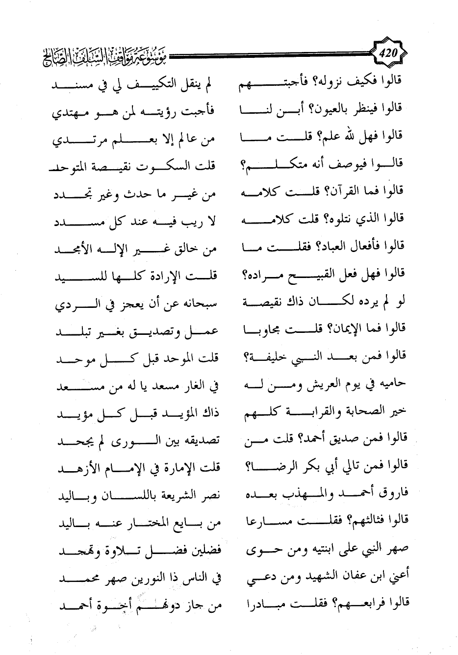 قالوا فما القرآن؟ قلت كلامه ... من غير ما حدث وغير تجدد