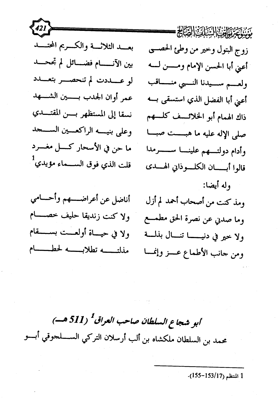 ذاك الهمام أبو الخلائف كلهم ... نسقا إلى المستظهر بن المقتدي