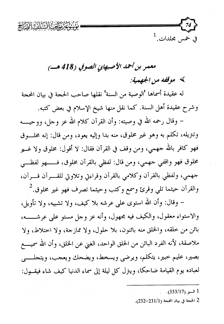 (¬2) الحجة في بيان المحجة (1/ 231 - 232).