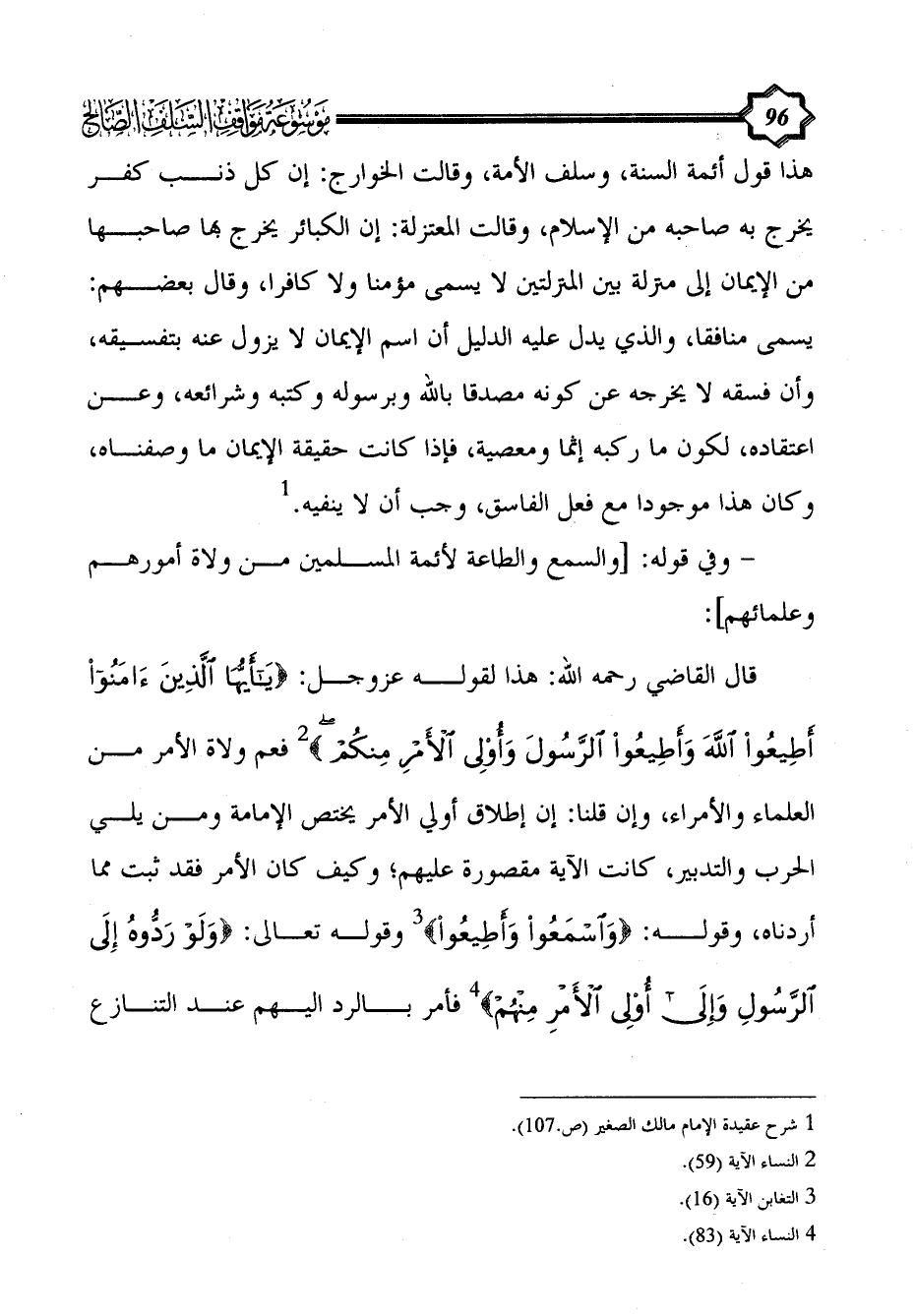 (¬1) شرح عقيدة الإمام مالك الصغير (ص.107).
