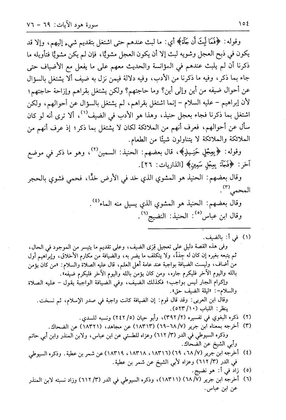 وقوله: (بِعِجْلٍ حَنِيذٍ)، قَالَ بَعْضُهُمْ: الحنيذ: السمين، وهو ما ذكر في موضع آخر: (فَجَاءَ بِعِجْلٍ سَمِينٍ).