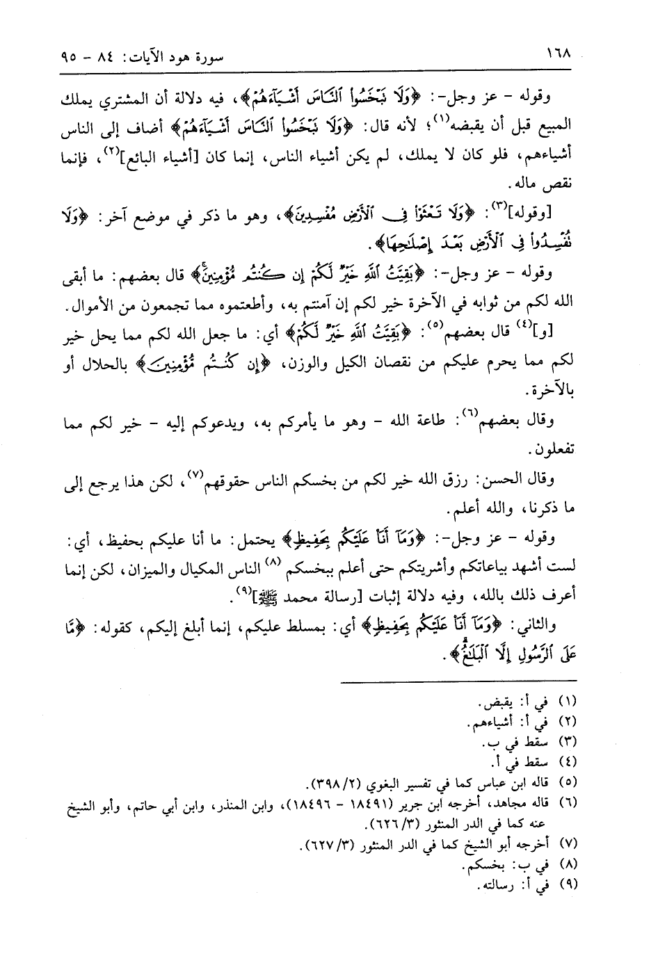 وقوله - عَزَّ وَجَلَّ -: (وَمَا أَنَا عَلَيْكُمْ بِحَفِيظٍ) يحتمل: ما أنا عليكم بحفيظ، أي: لست أشهد بياعاتكم وأشريتكم حتى أعلم ببخسكم الناس المكيال والميزان، لكن إنما أعرف ذلك باللَّه، وفيه دلالة إثبات رسالة مُحَمَّد - صَلَّى اللَّهُ عَلَيهِ وَسَلَّمَ -.