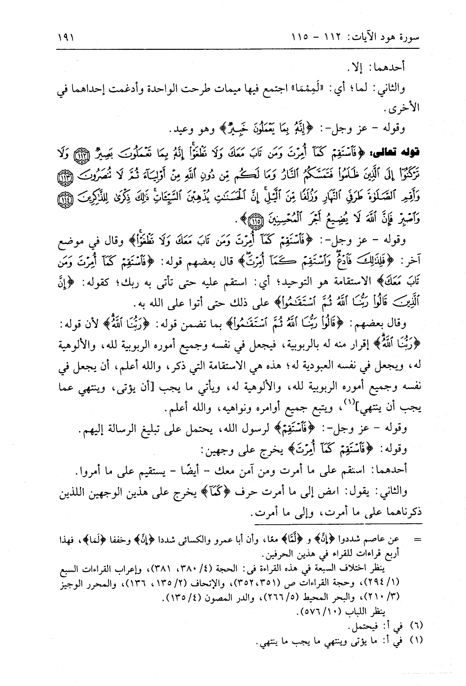 وقوله - عَزَّ وَجَلَّ -: (فَاسْتَقِمْ كَمَا أُمِرْتَ وَمَنْ تَابَ مَعَكَ وَلَا تَطْغَوْا) وقال في موضع آخر: (فَلِذَلِكَ فَادْعُ وَاسْتَقِمْ كَمَا أُمِرْتَ) قَالَ بَعْضُهُمْ قوله: (فَاسْتَقِمْ كَمَا أُمِرْتَ وَمَنْ تَابَ مَعَكَ) الاستقامة هو التوحيد؛ أي: استقم عليه حتى تأتي به ربك؛ كقوله: (إِنَّ الَّذِينَ قَالُوا رَبُّنَا اللَّهُ ثُمَّ اسْتَقَامُوا) على ذلك حتى أتوا على اللَّه به.