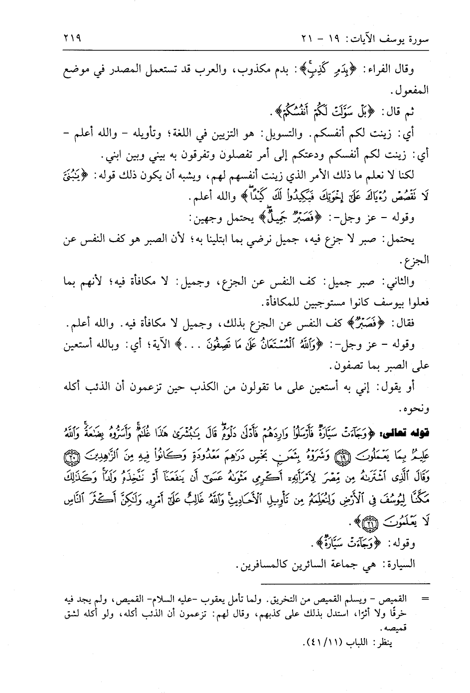 والثاني: صبر جميل: كف النفس عن الجزع، وجميل: لا مكافأة فيه؛ لأنهم بما فعلوا بيوسف كانوا مستوجبين للمكافأة.