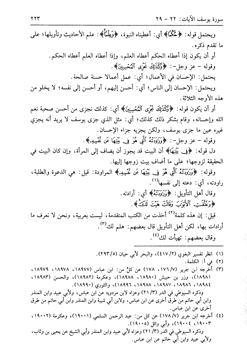 وقوله - عَزَّ وَجَلَّ -: (وَرَاوَدَتْهُ الَّتِي هُوَ فِي بَيْتِهَا عَنْ نَفْسِهِ وَغَلَّقَتِ الْأَبْوَابَ وَقَالَتْ هَيْتَ لَكَ قَالَ مَعَاذَ اللَّهِ إِنَّهُ رَبِّي أَحْسَنَ مَثْوَايَ إِنَّهُ لَا يُفْلِحُ الظَّالِمُونَ (23)