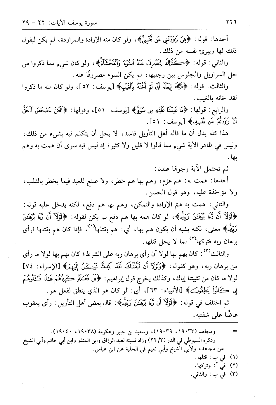 والثاني: همت به همّ الإرادة والتمكن، وهم بها هم دفع، لكنه يدخل عليه قوله: (لَوْلَا أَنْ رَأَى بُرْهَانَ رَبِّهِ)، لو كان همه بها هم دفع لم يكن لقوله: (لَوْلَا أَنْ رَأَى بُرْهَانَ رَبِّهِ) معنى، لكنه يشبه أن يكون هم بها، أي: هم بقتلها، فإذا كان هم بقتلها فرأى برهان ربه فتركها لما لا يحل قتلها.