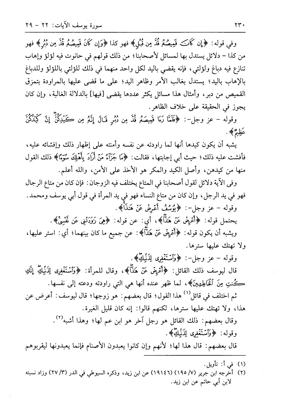 وقوله - عَزَّ وَجَلَّ -: (يُوسُفُ أَعْرِضْ عَنْ هَذَا وَاسْتَغْفِرِي لِذَنْبِكِ إِنَّكِ كُنْتِ مِنَ الْخَاطِئِينَ (29)