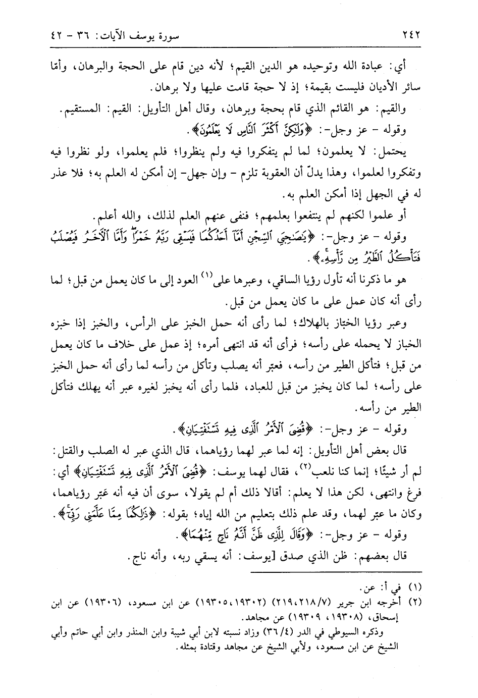 وعبر رؤيا الخبّاز بالهلاك؛ لما رأى أنه حمل الخبز على الرأس، والخبز إذا خبزه الخباز لا يحمله على رأسه؛ فرأى أنه قد انتهى أمره؛ إذ عمل على خلاف ما كان يعمل من قبل؛ فتأكل الطير من رأسه، فعبّر أنه يصلب وتأكل من رأسه لما رأى أنه حمل الخبز على رأسه؛ لما كان يخبز من قبل للعباد، فلما رأى أنه يخبز لغيره عبر أنه يهلك فتأكل الطير من رأسه.