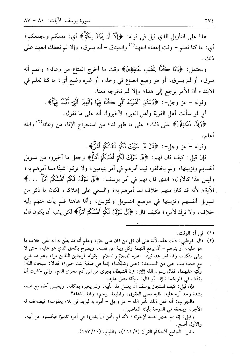 فَإِنْ قِيلَ: كيف قال لهم: (بَلْ سَوَّلَتْ لَكُمْ أَنْفُسُكُمْ أَمْرًا) وجعل ما أخبروه من تسويل أنفسهم وتزيينها؛ ولم يخالفوه فيما أمرهم في أمر بنيامين، ولا تركوا شيئًا مما أمرهم به؛ وليس هذا كالأول؛ الذي قال لهم في أمر يوسف: (بَلْ سَوَّلَتْ لَكُمْ أَنْفُسُكُمْ أَمْرًا. . .) الآية؛ لأنه قد كان منهم خلاف لما أمرهم به؛ والسعي على إهلاكه، فكان ما ذكر من تسويل أنفسهم وتزيينها في موضع التسويل والتزيين، وأمَّا هاهنا فلم يأت منهم إليه خلاف، ولا ترك لأمره؛ فكيف قال: (بَلْ سَوَّلَتْ لَكُمْ أَنْفُسُكُمْ أَمْرًا) ولكن يشبه أن يكون قال