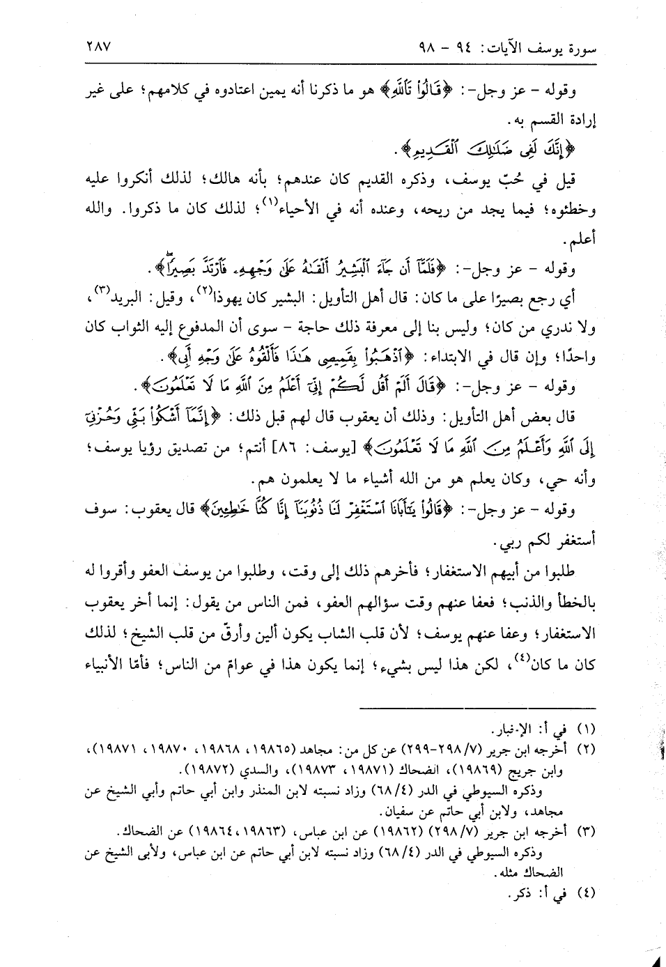 وقوله - عَزَّ وَجَلَّ -: (قَالُوا تَاللَّهِ إِنَّكَ لَفِي ضَلَالِكَ الْقَدِيمِ (95) هو ما ذكرنا أنه يمين اعتادوه في كلامهم؛ على غير إرادة القسم به.
