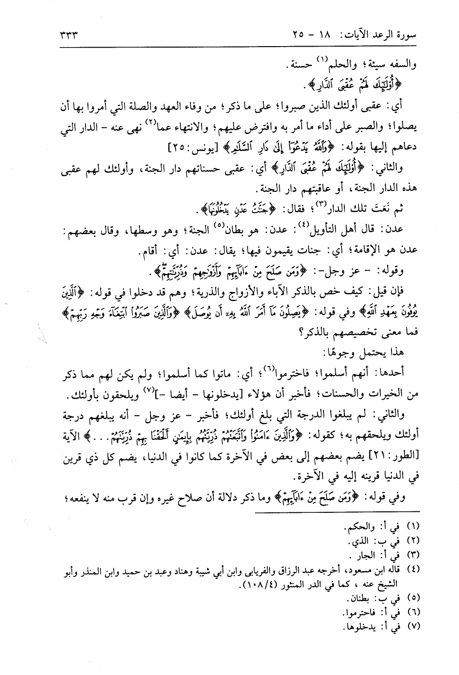 والثاني: (أُولَئِكَ لَهُمْ عُقْبَى الدَّارِ) أي: عقبى حسناتهم دار الجنة، وأُولَئِكَ لهم عقبى هذه الدار الجنة، أو عاقبتهم دار الجنة.