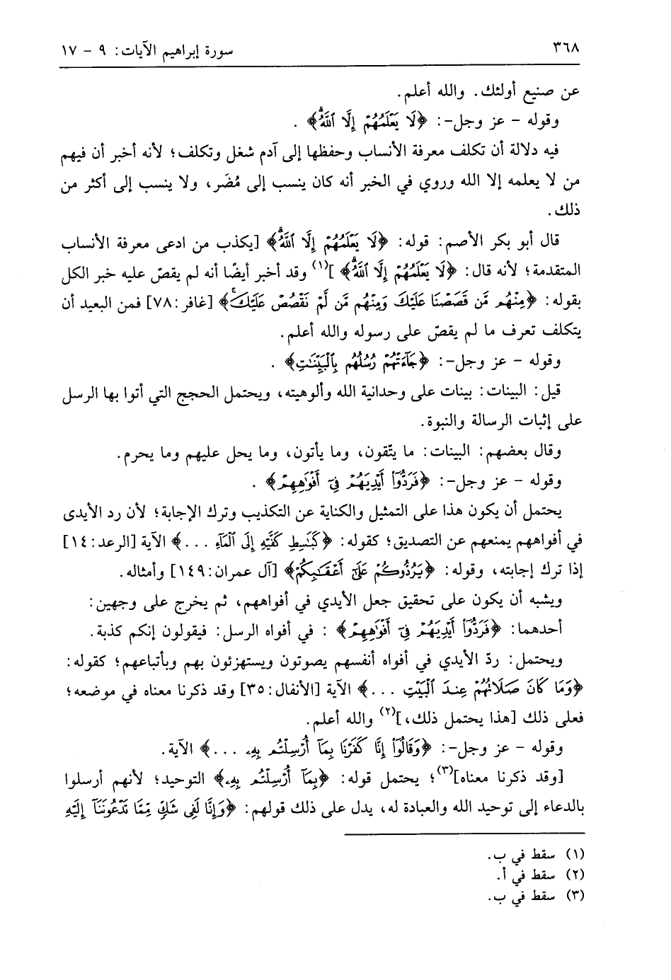 قال أبو بكر الأصم: قوله: (لَا يَعْلَمُهُمْ إِلَّا اللَّهُ) يكذب من ادعى معرفة الأنساب المتقدمة؛ لأنه قال: (لَا يَعْلَمُهُمْ إِلَّا اللَّهُ)، وقد أخبر أيضًا أنه لم يقص عليه خبر الكل بقوله: (مِنْهُمْ مَنْ قَصَصْنَا عَلَيْكَ وَمِنْهُمْ مَنْ لَمْ نَقْصُصْ عَلَيْكَ)، فمن البعيد أن يتكلف تعرف ما لم يقصق على رسوله واللَّه أعلم.