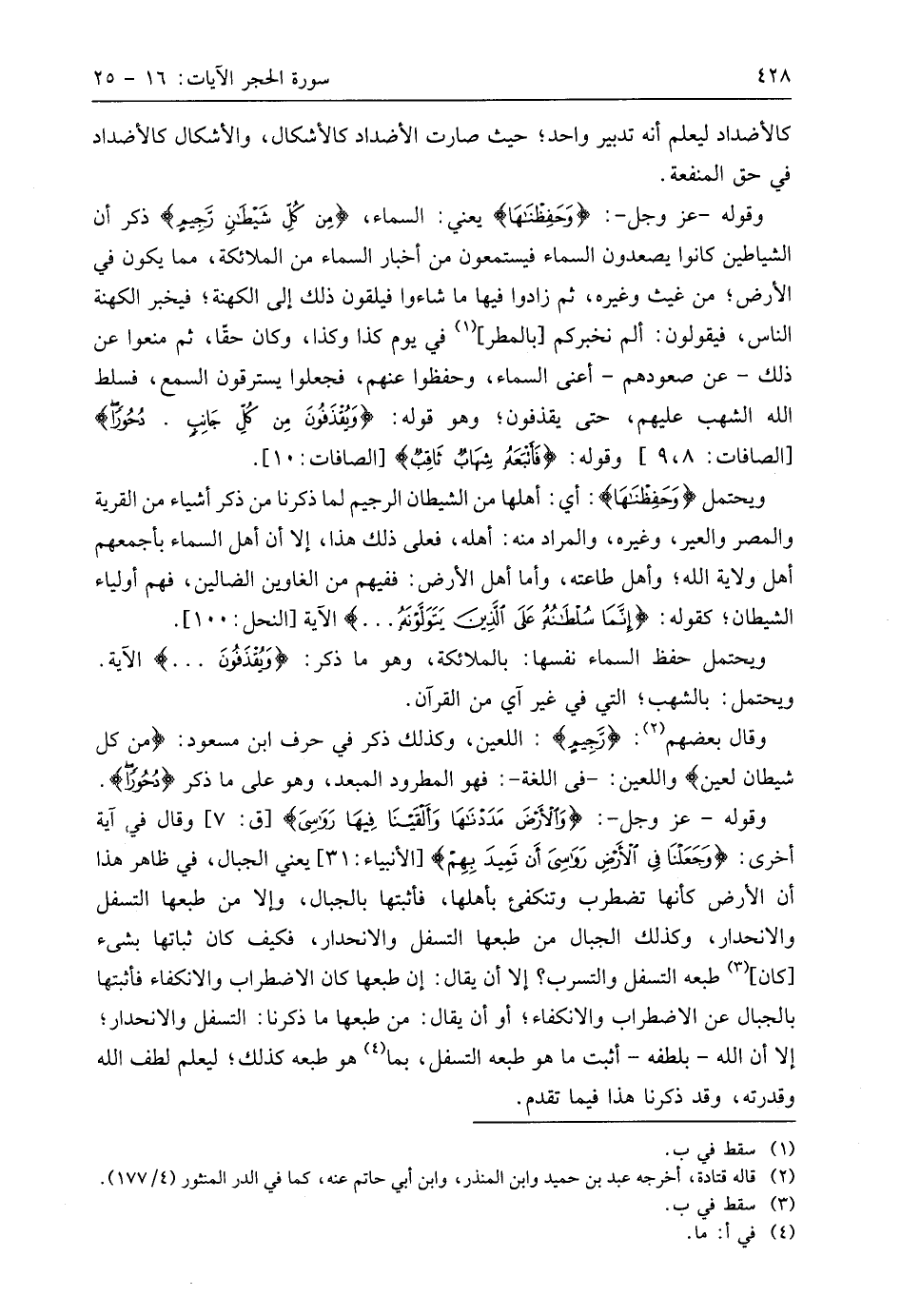 ويحتمل حفظ السماء نفسها: بالملائكة، وهو ما ذكر: (وَيُقْذَفُونَ. . .) الآية.