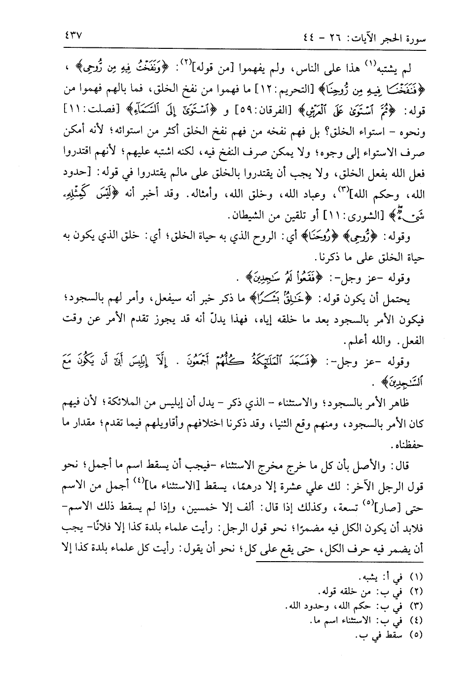 وقوله - عَزَّ وَجَلَّ -: (فَسَجَدَ الْمَلَائِكَةُ كُلُّهُمْ أَجْمَعُونَ (30) إِلَّا إِبْلِيسَ أَبَى أَنْ يَكُونَ مَعَ السَّاجِدِينَ (31)