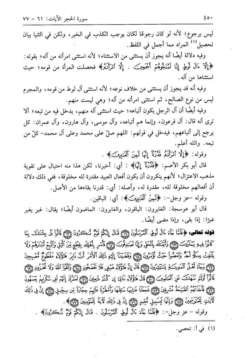 وفيه دلالة أيضًا أنه يجوز أن يستثنى من الاستثناء؛ لأنه اسشى امرأته من آله؛ بقوله: (إِلَّا آلَ لُوطٍ إِنَّا لَمُنَجُّوهُمْ أَجْمَعِينَ (59) إِلَّا امْرَأَتَهُ) فحصلت المرأة من قومه؛ حيث استثناها من آله.