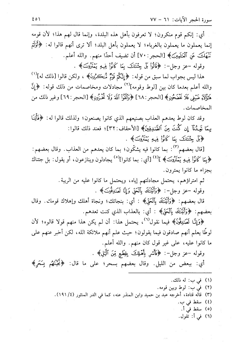 وقوله - عَزَّ وَجَلَّ -: (فَأَسْرِ بِأَهْلِكَ بِقِطْعٍ مِنَ اللَّيْلِ وَاتَّبِعْ أَدْبَارَهُمْ وَلَا يَلْتَفِتْ مِنْكُمْ أَحَدٌ وَامْضُوا حَيْثُ تُؤْمَرُونَ (65)
