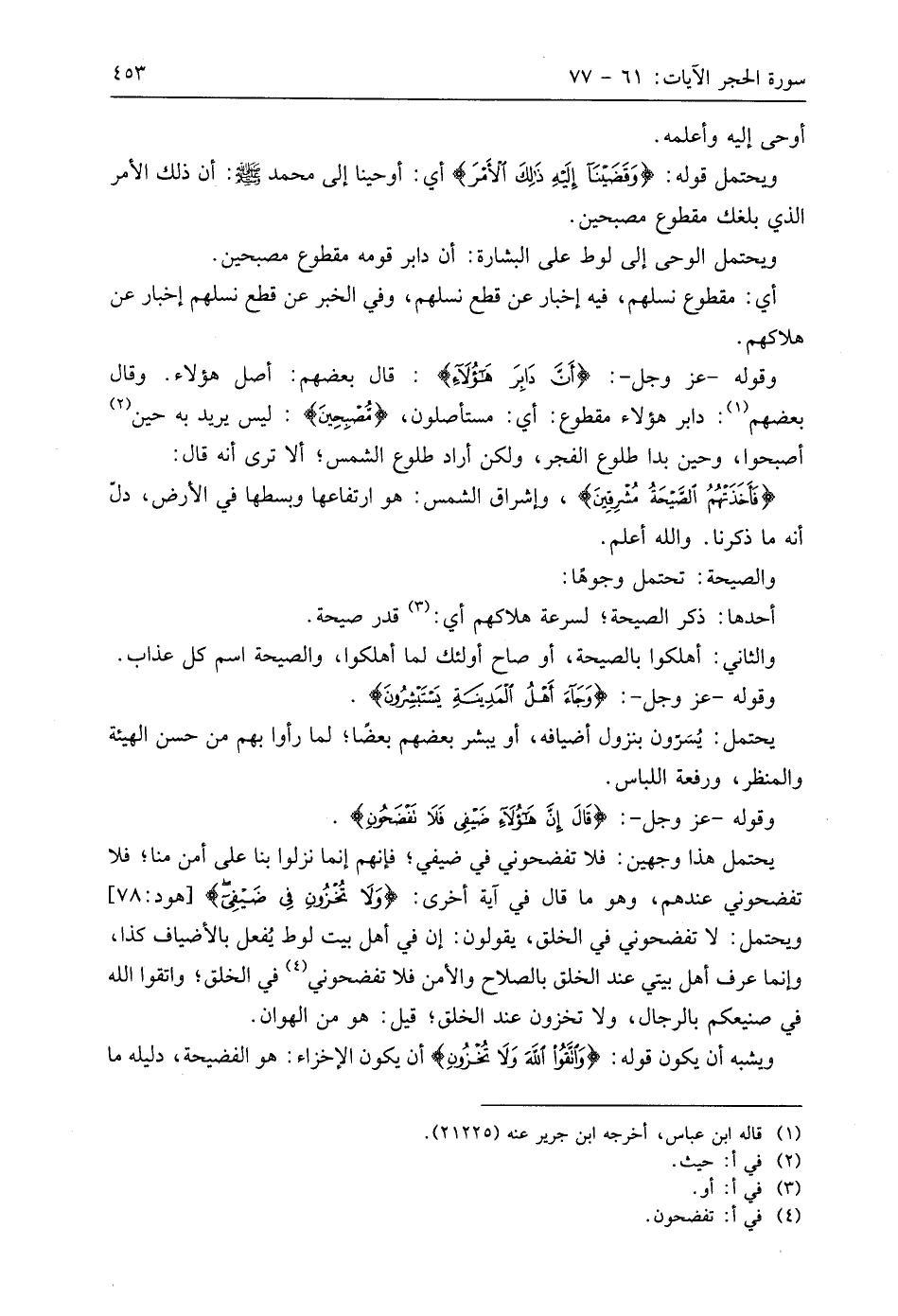 وقوله - عَزَّ وَجَلَّ -: (أَنَّ دَابِرَ هَؤُلَاءِ): قَالَ بَعْضُهُمْ: أصل هَؤُلَاءِ. وقال بعضهم: دابر هَؤُلَاءِ مقطوع: أي: مستأصلون، (مُصْبِحِينَ): ليس يريد به حين أصبحوا، وحين بدا طلوع الفجر، ولكن أراد طلوع الشمس؛ ألا ترى أنه قال: