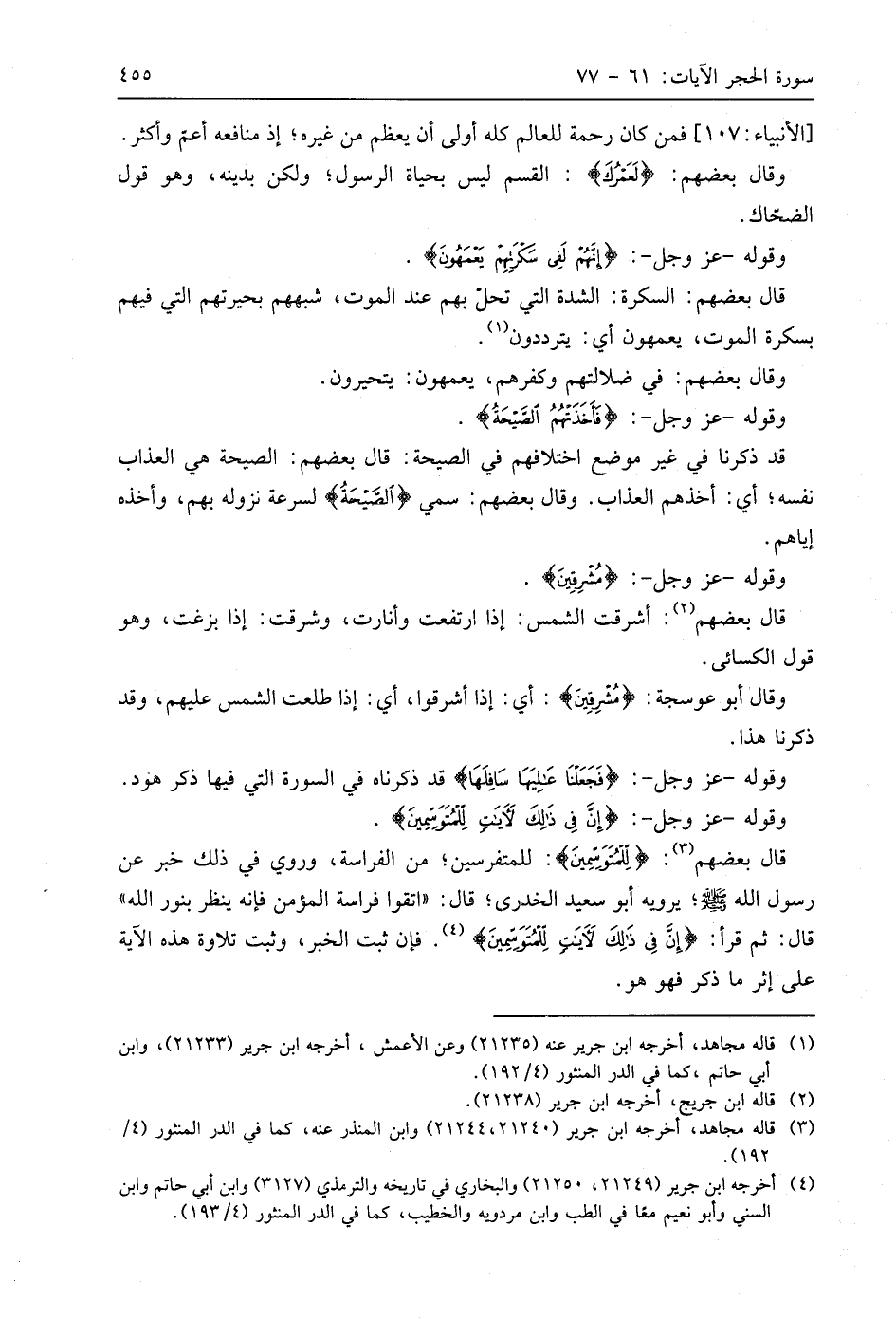 وقوله - عَزَّ وَجَلَّ -: (فَأَخَذَتْهُمُ الصَّيْحَةُ مُشْرِقِينَ (73)