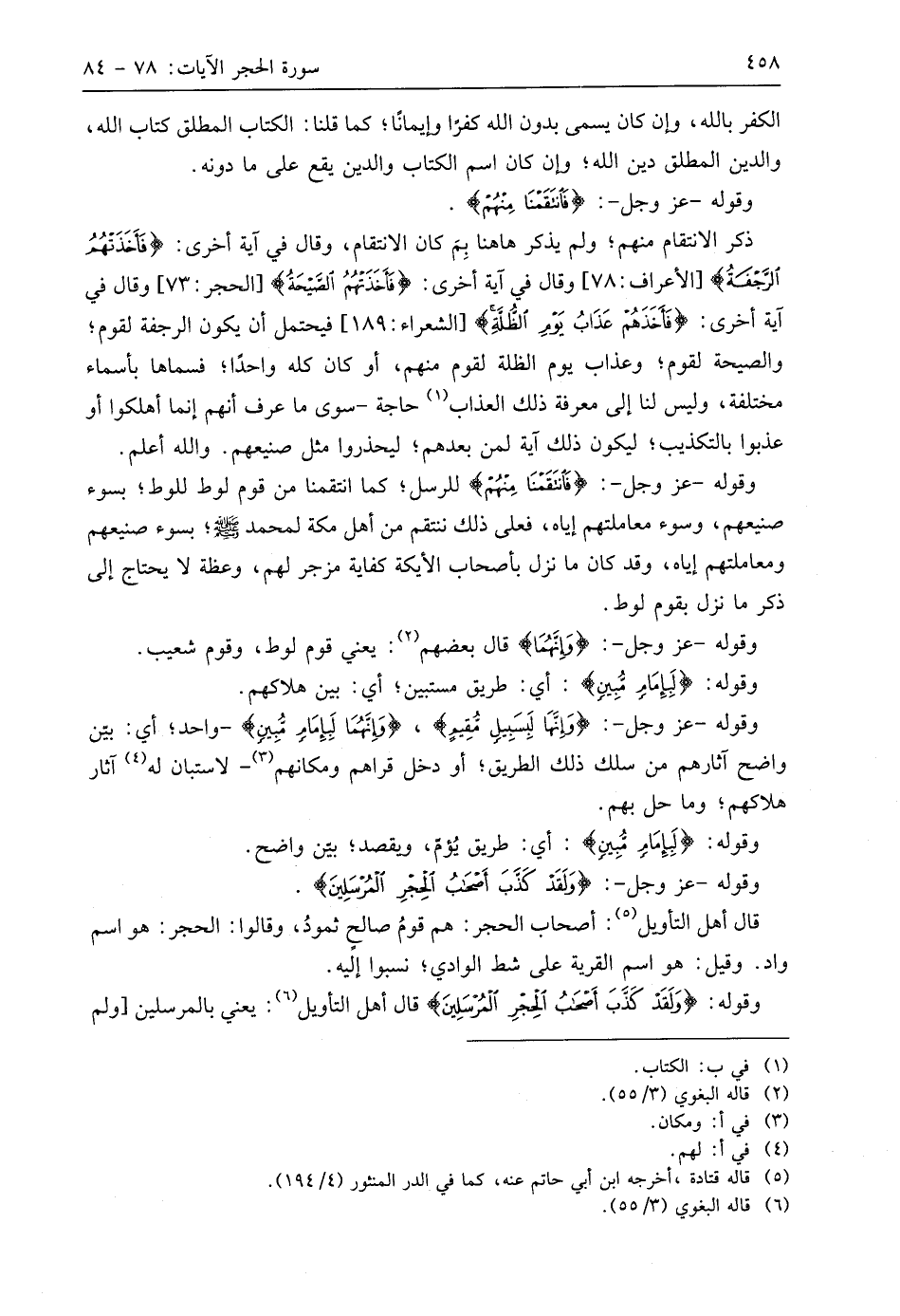 وقوله - عَزَّ وَجَلَّ -: (وَلَقَدْ كَذَّبَ أَصْحَابُ الْحِجْرِ الْمُرْسَلِينَ (80)