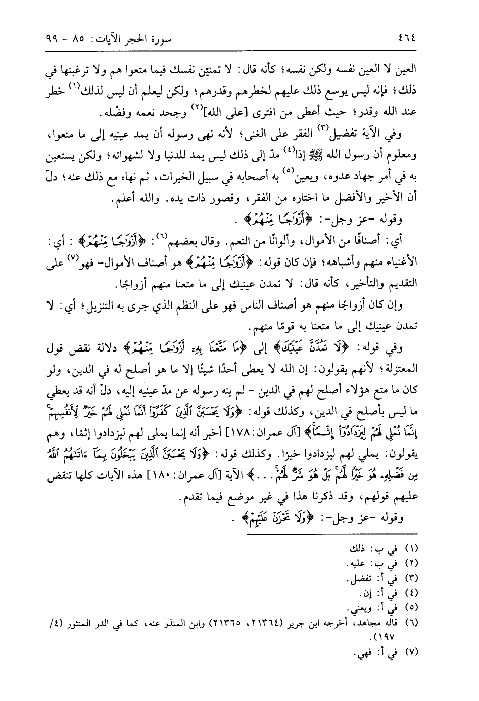 وفي قوله: [(لَا تَمُدَّنَّ عَيْنَيْكَ إِلَى مَا مَتَّعْنَا بِهِ أَزْوَاجًا مِنْهُمْ)] دلالة نقض قول المعتزلة؛ لأنهم يقولون: إن اللَّه لا يعطى أحدًا شيئًا إلا ما هو أصلح له في الدِّين، ولو كان ما متع هَؤُلَاءِ أصلح لهم في الدِّين - لم ينه رسوله عن مد عينيه إليه، دلّ أنه قد يعطي ما ليس بأصلح في الدِّين، وكذلك قوله: (وَلَا يَحْسَبَنَّ الَّذِينَ كَفَرُوا أَنَّمَا نُمْلِي لَهُمْ خَيْرٌ لِأَنْفُسِهِمْ إِنَّمَا نُمْلِي لَهُمْ لِيَزْدَادُوا إِثْمًا)، أخبر أنه إنما يملى لهم ليزدادوا إثمًا، وهم يقولون: يملي لهم ليزدادوا خيرًا. وكذلك قوله: (وَلَا يَحْسَبَنَّ الَّذِينَ يَبْخَلُونَ بِمَا آتَاهُمُ اللَّهُ مِنْ فَضْلِهِ هُوَ خَيْرًا لَهُمْ بَلْ هُوَ شَرٌّ لَهُمْ. . .) الآية، هذه الآيات كلها تنقض عليهم قولهم، وقد ذكرنا هذا في غير موضع فيما تقدم.