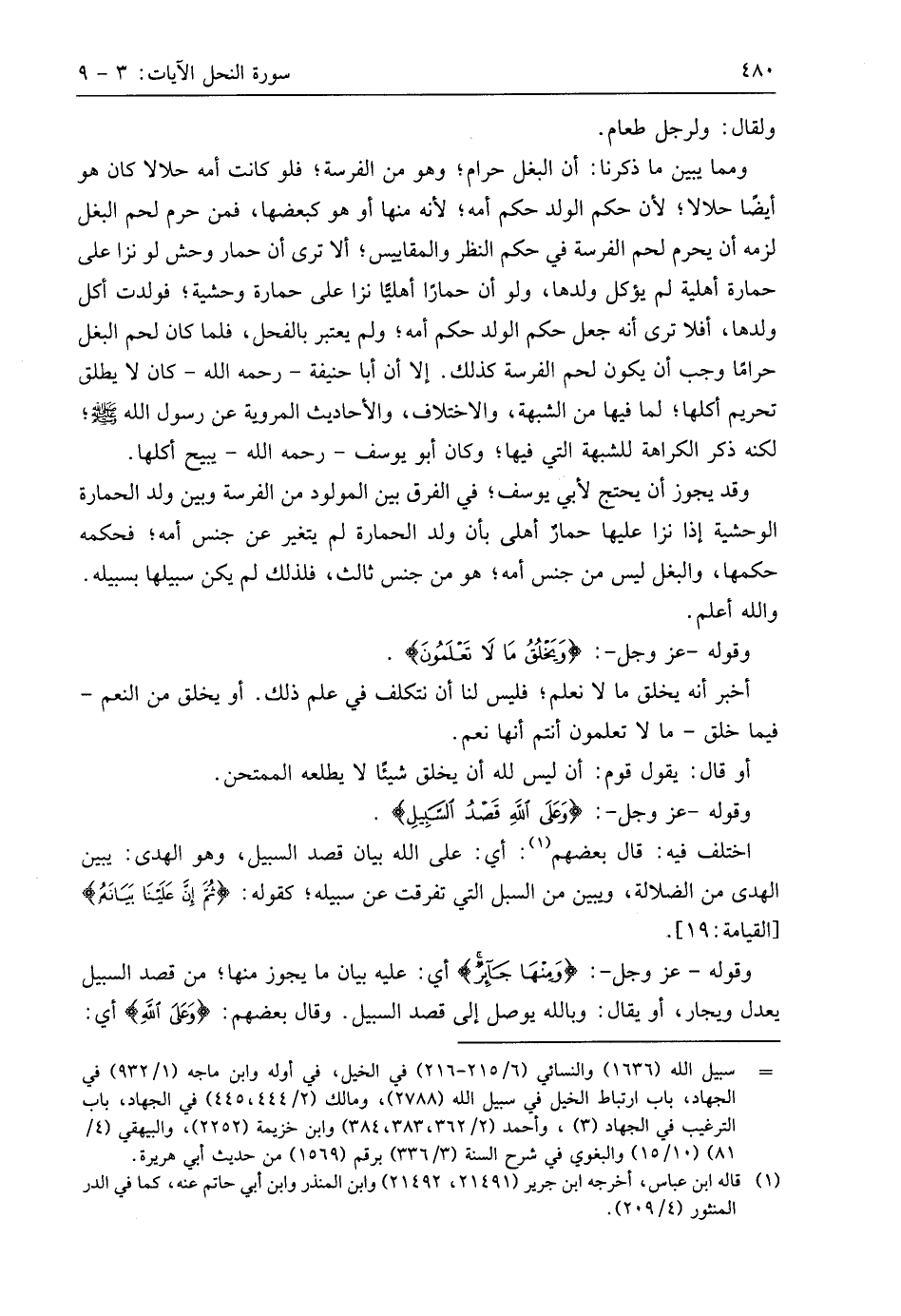 وقوله - عَزَّ وَجَلَّ -: (وَمِنْهَا جَائِرٌ) أي: عليه بيان ما يجوز منها؛ من قصد السبيل يعدل ويجار، أو يقال: وباللَّه يوصل إلى قصد السبيل. وقَالَ بَعْضُهُمْ: (وَعَلَى اللَّهِ) أي: