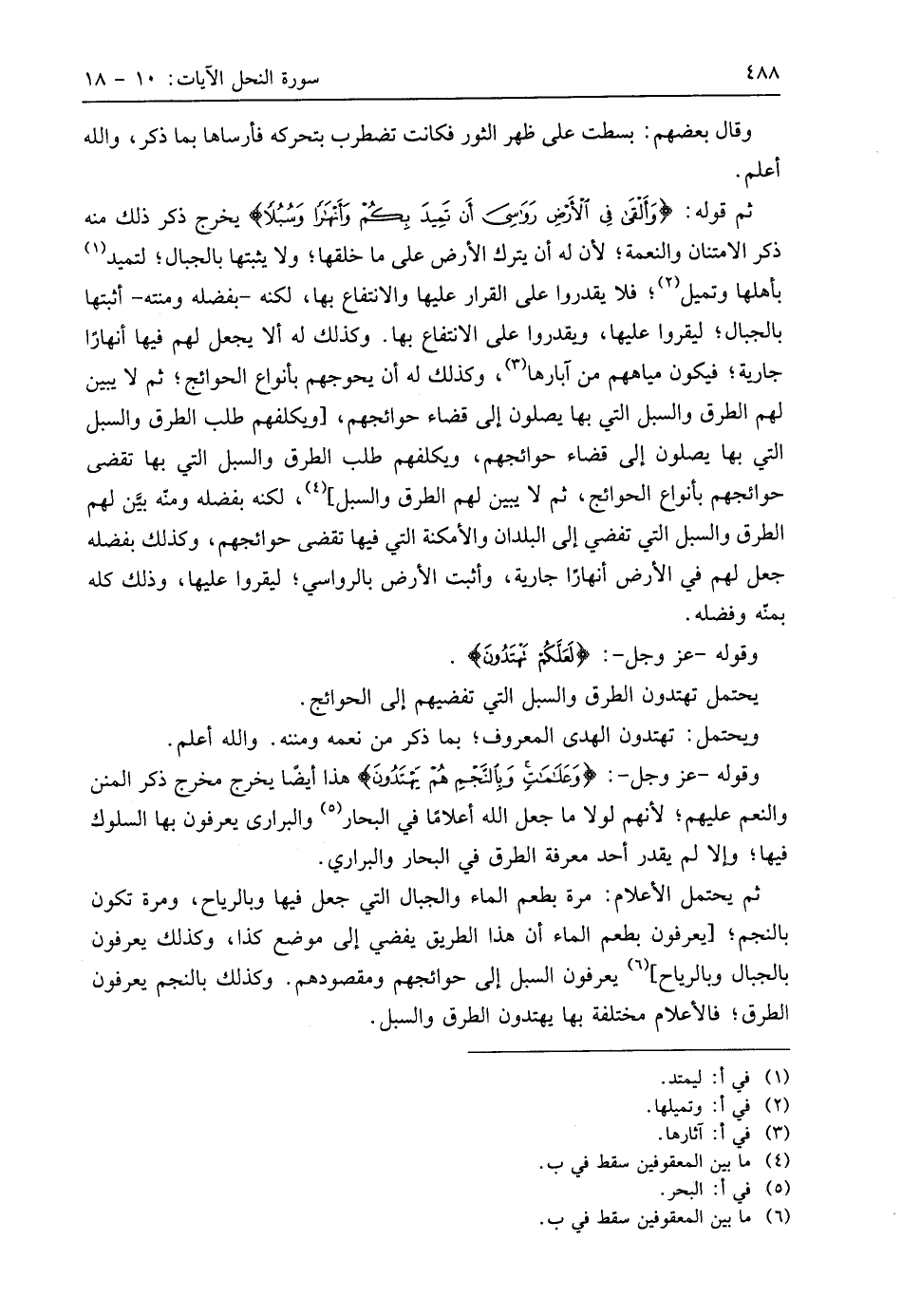 ثم يحتمل الأعلام: مرة بطعم الماء والجبال التي جعل فيها وبالرياح، ومرة تكون بالنجم؛ يعرفون بطعم الماء أن هذا الطريق يفضي إلى موضع كذا، وكذلك يعرفون بالجبال وبالرياح، يعرفون السبل إلى حوائجهم ومقصودهم. وكذلك بالنجم يعرفون الطرق؛ فالأعلام مختلفة بها يهتدون الطرق والسبل.