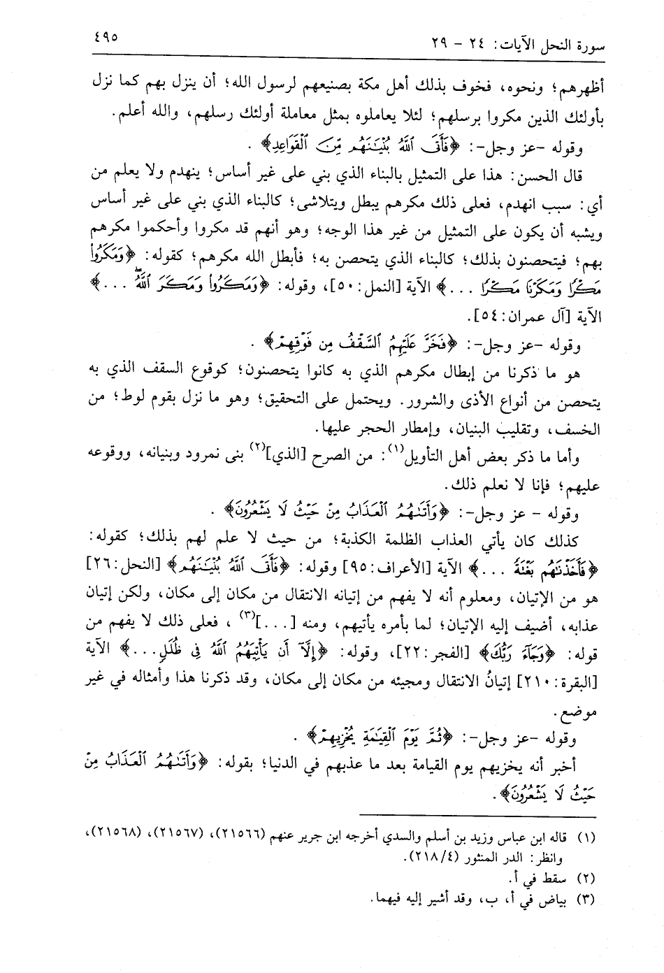 وقوله - عَزَّ وَجَلَّ -: (فَأَتَى اللَّهُ بُنْيَانَهُمْ مِنَ الْقَوَاعِدِ).