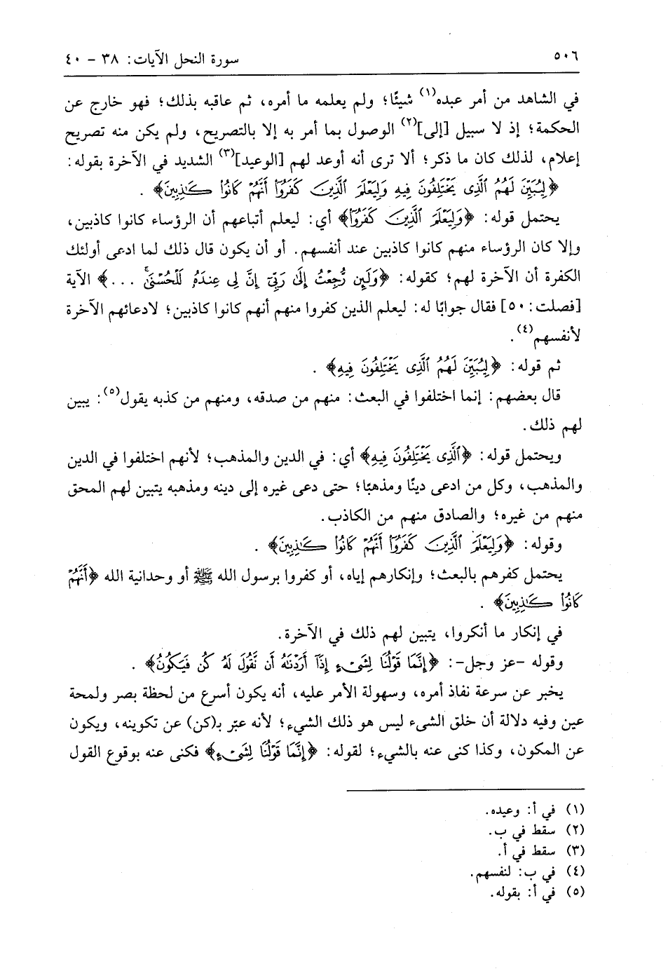 وقوله - عَزَّ وَجَلَّ -: (إِنَّمَا قَوْلُنَا لِشَيْءٍ إِذَا أَرَدْنَاهُ أَنْ نَقُولَ لَهُ كُنْ فَيَكُونُ (40)