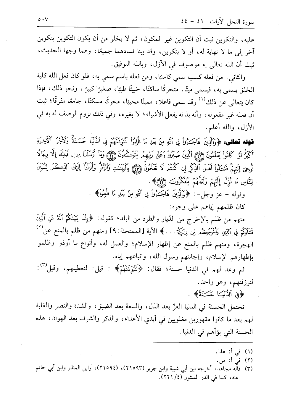 قوله تعالى: (وَالَّذِينَ هَاجَرُوا فِي اللَّهِ مِنْ بَعْدِ مَا ظُلِمُوا لَنُبَوِّئَنَّهُمْ فِي الدُّنْيَا حَسَنَةً وَلَأَجْرُ الْآخِرَةِ أَكْبَرُ لَوْ كَانُوا يَعْلَمُونَ (41) الَّذِينَ صَبَرُوا وَعَلَى رَبِّهِمْ يَتَوَكَّلُونَ (42) وَمَا أَرْسَلْنَا مِنْ قَبْلِكَ إِلَّا رِجَالًا نُوحِي إِلَيْهِمْ فَاسْأَلُوا أَهْلَ الذِّكْرِ إِنْ كُنْتُمْ لَا تَعْلَمُونَ (43) بِالْبَيِّنَاتِ وَالزُّبُرِ وَأَنْزَلْنَا إِلَيْكَ الذِّكْرَ لِتُبَيِّنَ لِلنَّاسِ مَا نُزِّلَ إِلَيْهِمْ وَلَعَلَّهُمْ يَتَفَكَّرُونَ (44)
