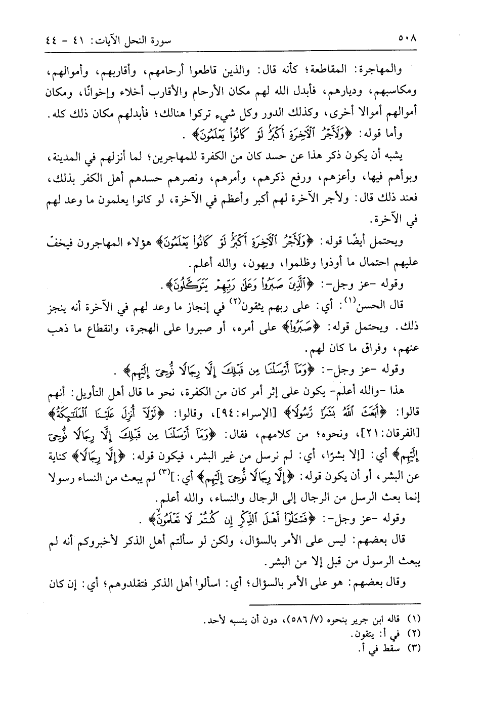 وقوله - عَزَّ وَجَلَّ -: (وَمَا أَرْسَلْنَا مِنْ قَبْلِكَ إِلَّا رِجَالًا نُوحِي إِلَيْهِمْ فَاسْأَلُوا أَهْلَ الذِّكْرِ إِنْ كُنْتُمْ لَا تَعْلَمُونَ (43)