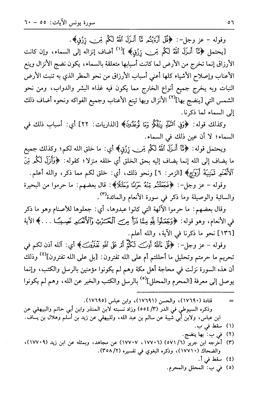 وقوله - عَزَّ وَجَلَّ -: (فَجَعَلْتُمْ مِنْهُ حَرَامًا وَحَلَالًا): قَالَ بَعْضُهُمْ: ما حرموا من البحيرة والسائبة والوصيلة وما ذكر في سورة الأنعام والمائدة.