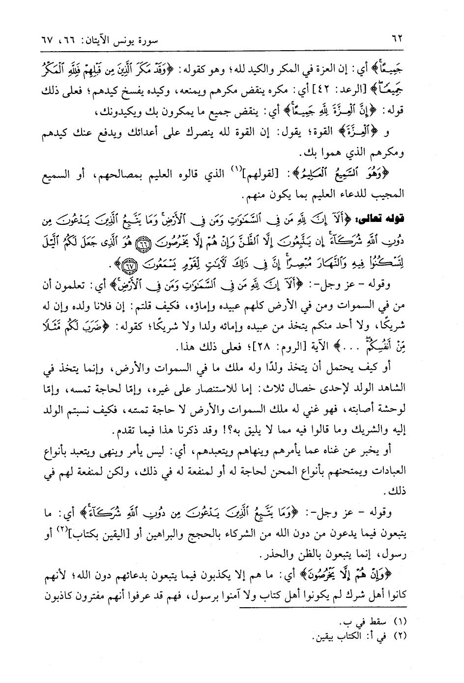 قوله تعالى: (أَلَا إِنَّ لِلَّهِ مَنْ فِي السَّمَاوَاتِ وَمَنْ فِي الْأَرْضِ وَمَا يَتَّبِعُ الَّذِينَ يَدْعُونَ مِنْ دُونِ اللَّهِ شُرَكَاءَ إِنْ يَتَّبِعُونَ إِلَّا الظَّنَّ وَإِنْ هُمْ إِلَّا يَخْرُصُونَ (66) هُوَ الَّذِي جَعَلَ لَكُمُ اللَّيْلَ لِتَسْكُنُوا فِيهِ وَالنَّهَارَ مُبْصِرًا إِنَّ فِي ذَلِكَ لَآيَاتٍ لِقَوْمٍ يَسْمَعُونَ (67)