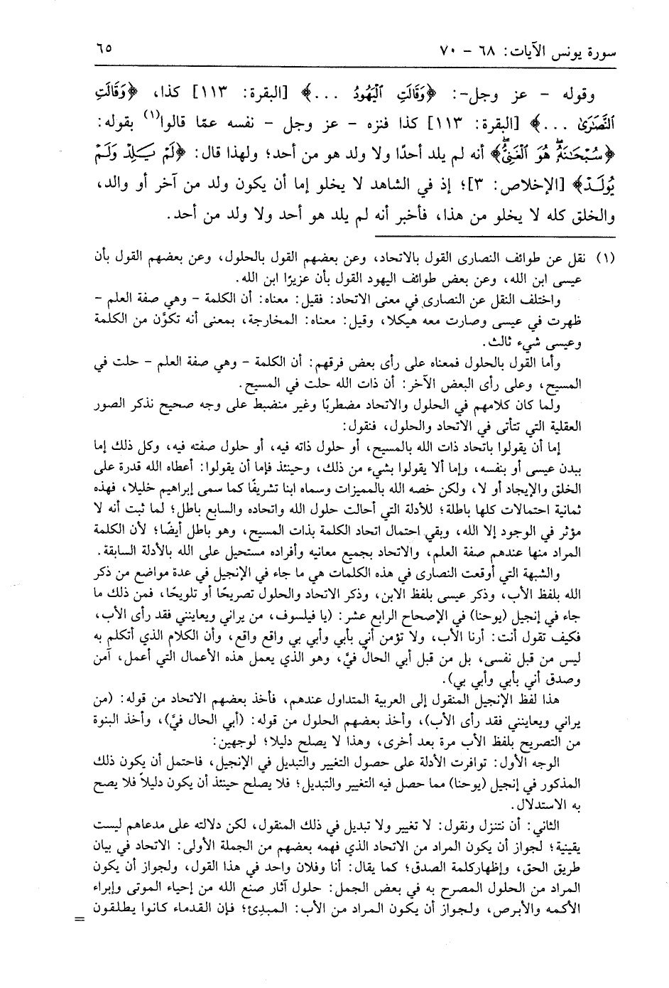 وقوله - عَزَّ وَجَلَّ -: (وَقَالَتِ الْيَهُودُ. . .) كذا، (وَقَالَتِ النَّصَارَى. . .) كذا فنزه - عَزَّ وَجَلَّ - نفسه عما قالوا بقوله: (سُبْحَانَهُ هُوَ الْغَنِيُّ) أنه لم يلد أحدًا ولا ولد هو من أحد؛ ولهذا قال: (لَمْ يَلِدْ وَلَمْ يُولَدْ)؛ إذ في الشاهد لا يخلو إما أن يكون ولد من آخر أو والد، والخلق كله لا يخلو من هذا، فأخبر أنه لم يلد هو أحد ولا ولد من أحد.