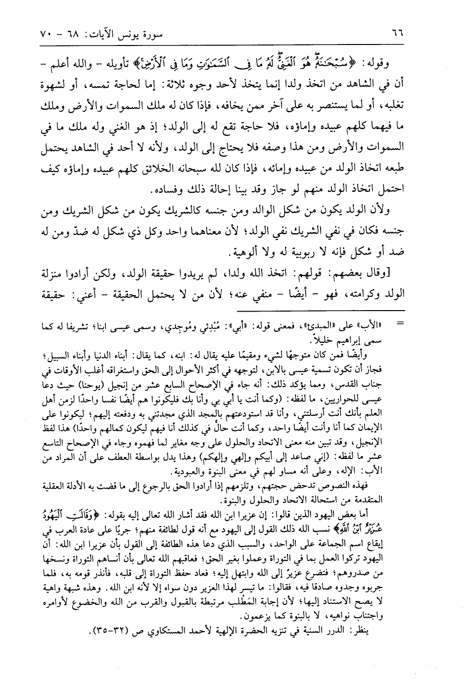 وقوله: (سُبْحَانَهُ هُوَ الْغَنِيُّ لَهُ مَا فِي السَّمَاوَاتِ وَمَا فِي الْأَرْضِ) تأويله - واللَّه أعلم - أن في الشاهد من اتخذ ولدا إنما يتخذ لأحد وجوه ثلاثة: إما لحاجة تمسه، أو لشهوة تغلبه، أو لما يستنصر به على آخر ممن يخافه، فإذا كان له ملك السماوات والأرض وملك ما فيهما كلهم عبيده وإماؤه، فلا حاجة تقع له إلى الولد؛ إذ هو الغني وله ملك ما فيِ السماوات والأرض ومن هذا وصفه فلا يحتاج إلى الولد، ولأنه لا أحد في الشاهد يحتمل طبعه اتخاذ الولد من عبيده وإمائه، فإذا كان لله سبحانه الخلائق كلهم عبيده وإماؤه كيف احتمل اتخاذ الولد منهم لو جاز وقد بينا إحالة ذلك وفساده.
