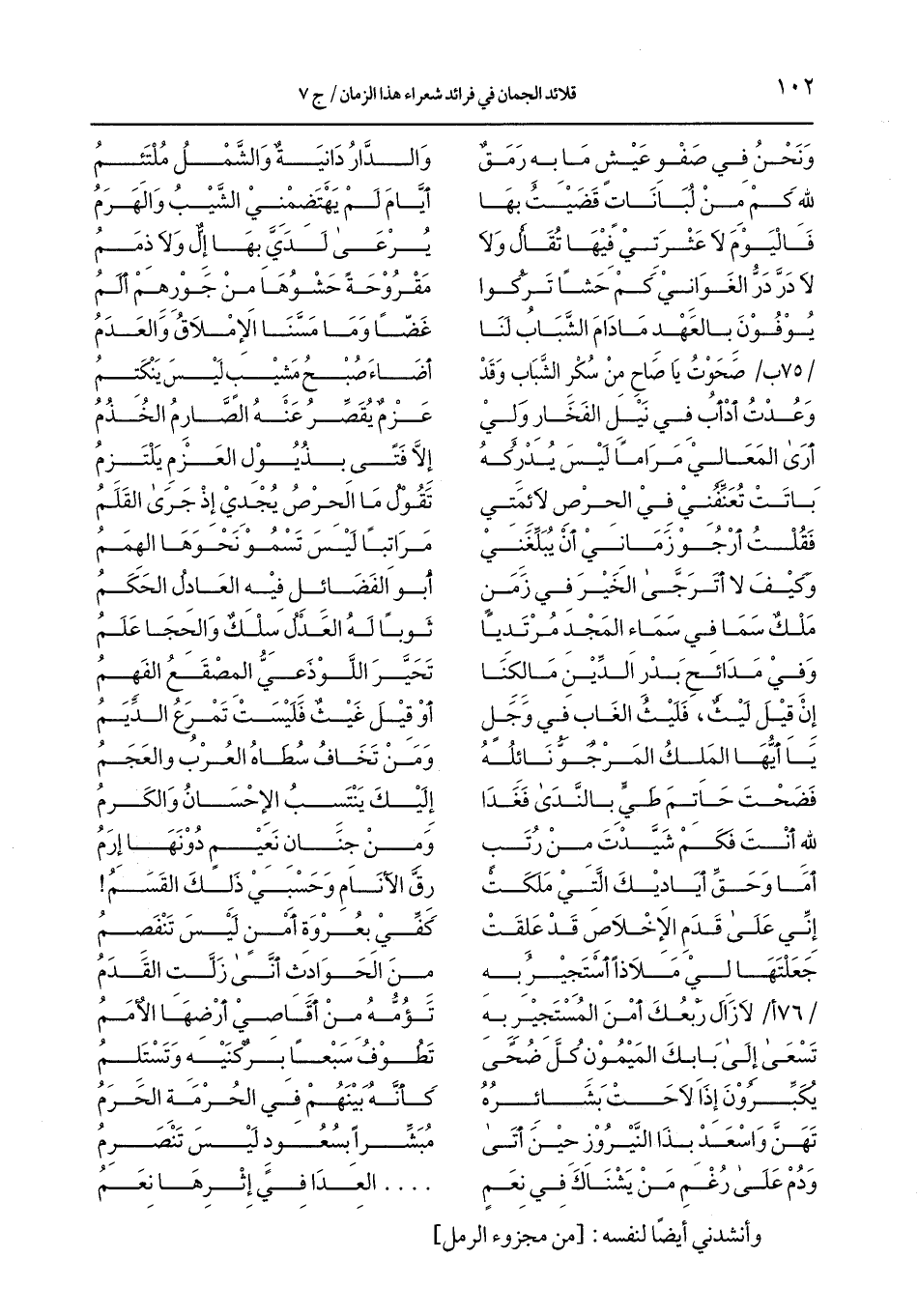 كتاب قلائد الجمان في فرائد شعراء هذا الزمان (اسم الجزء: 6)