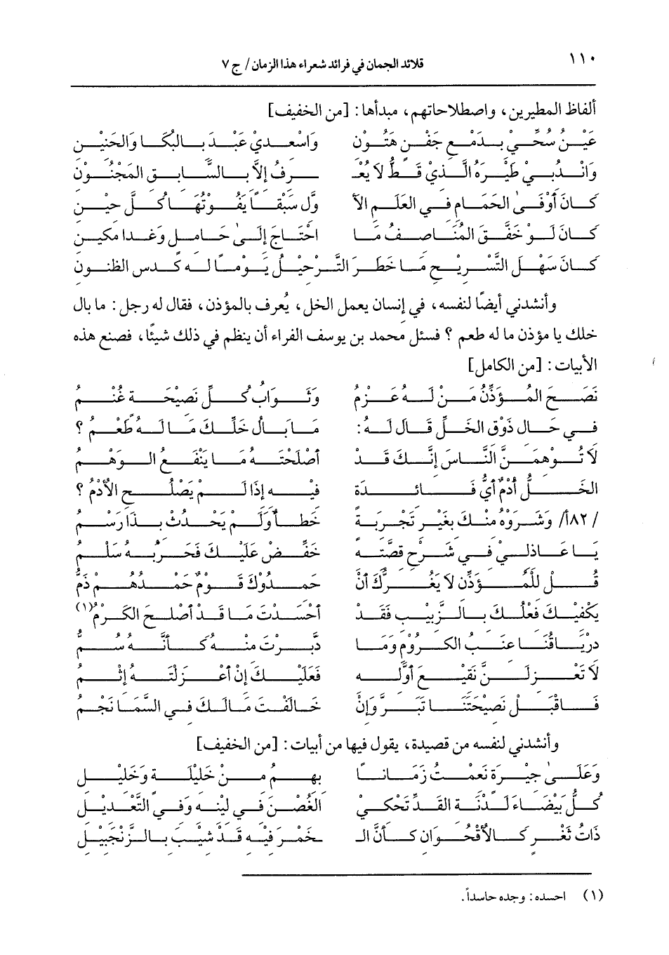 كتاب قلائد الجمان في فرائد شعراء هذا الزمان (اسم الجزء: 6)