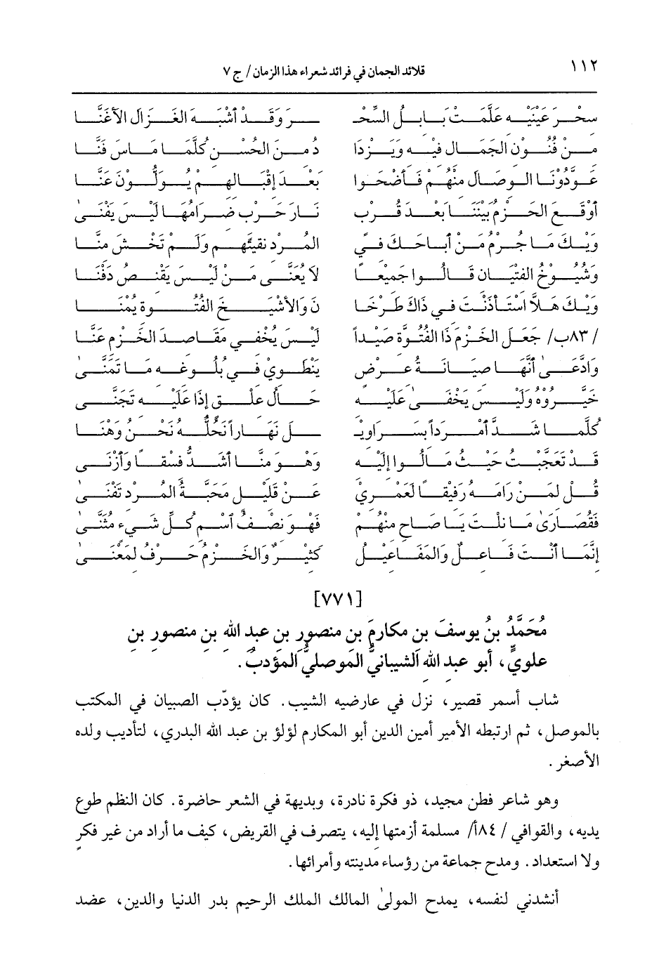 كتاب قلائد الجمان في فرائد شعراء هذا الزمان (اسم الجزء: 6)