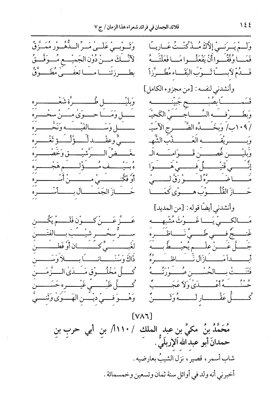كتاب قلائد الجمان في فرائد شعراء هذا الزمان (اسم الجزء: 6)