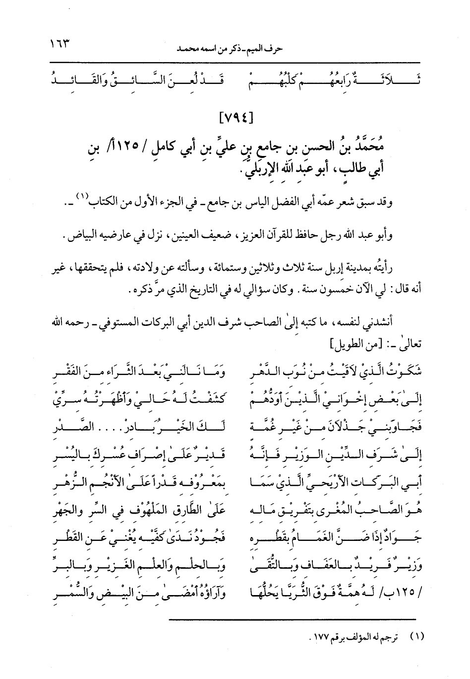 محمَّد بن الحسن بن جامع بن عليِّ بن أبي كامل /125 أ/ بن أبي طالبٍ، أبو عبد الله الإربلي.