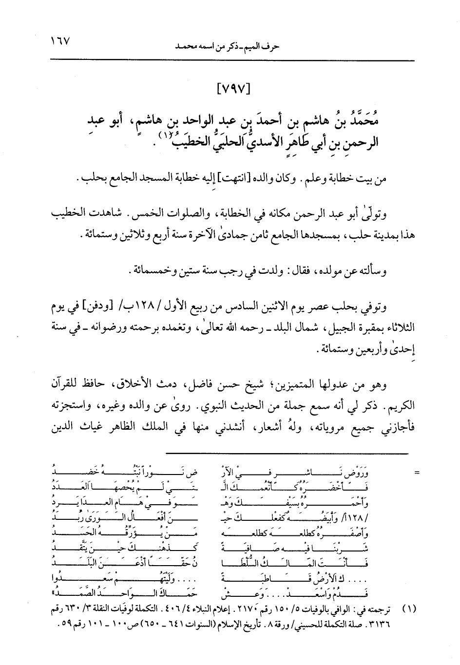محمَّد بن هاشم بن أحمد بن عبد الواحد بن هاشمٍ، أبو عبد الرحمن بن أبي طاهر الأسديُّ الحلبيُّ الخطيب.
