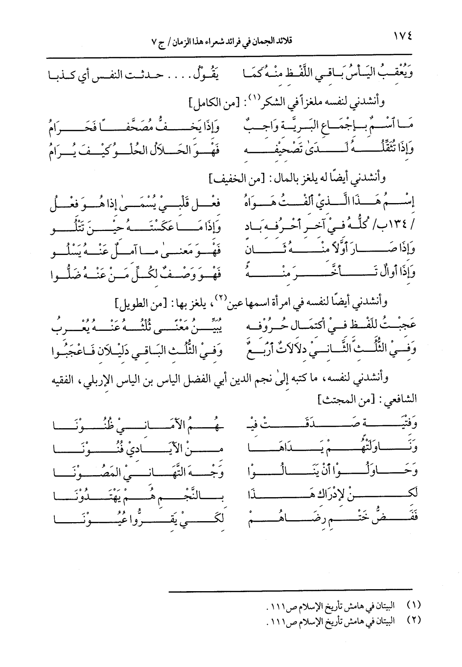كتاب قلائد الجمان في فرائد شعراء هذا الزمان (اسم الجزء: 6)