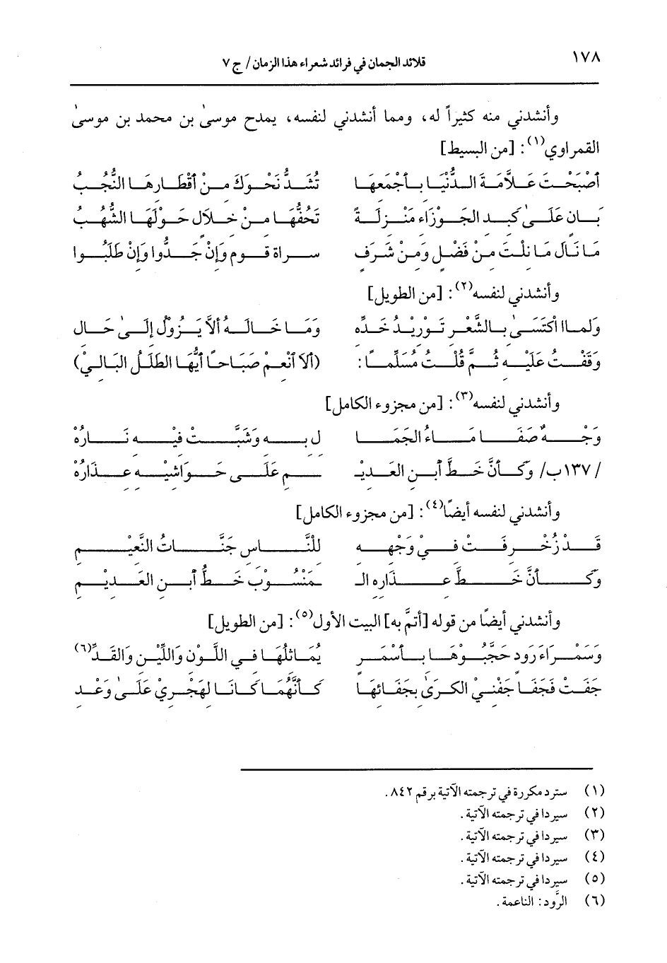 كتاب قلائد الجمان في فرائد شعراء هذا الزمان (اسم الجزء: 6)