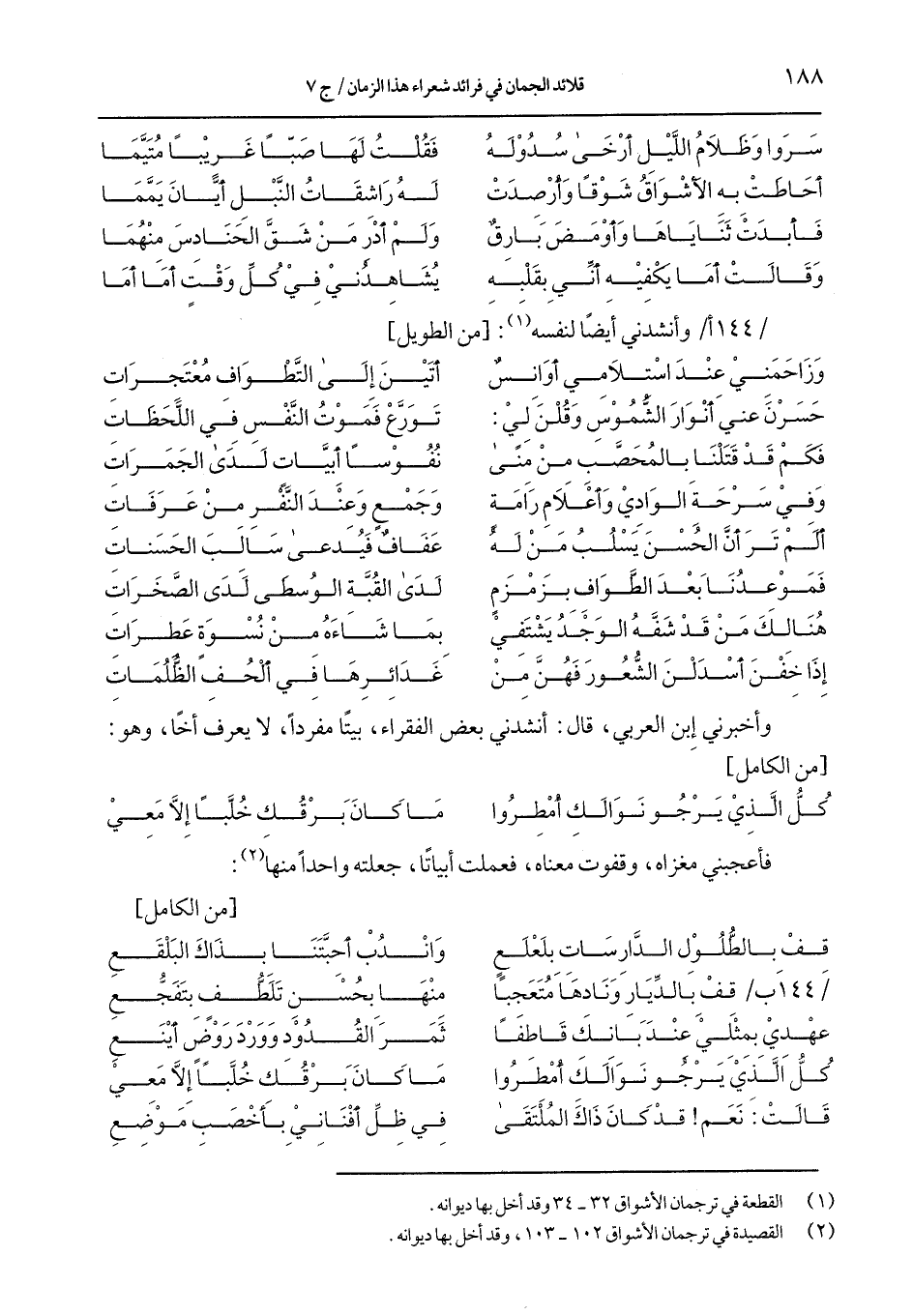 /144 أ/ وأنشدني أيضًا لنفسه: [من الطويل]